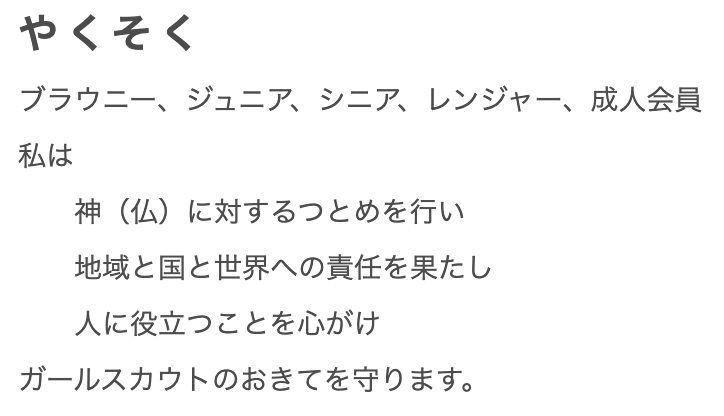 PS: Some hunting on the GSJ website for the Promise as written in Japanese confirms that Buddha is indeed in brackets, this was not an addition made by WAGGGS for the benefit of non-Japanese speakers. :)